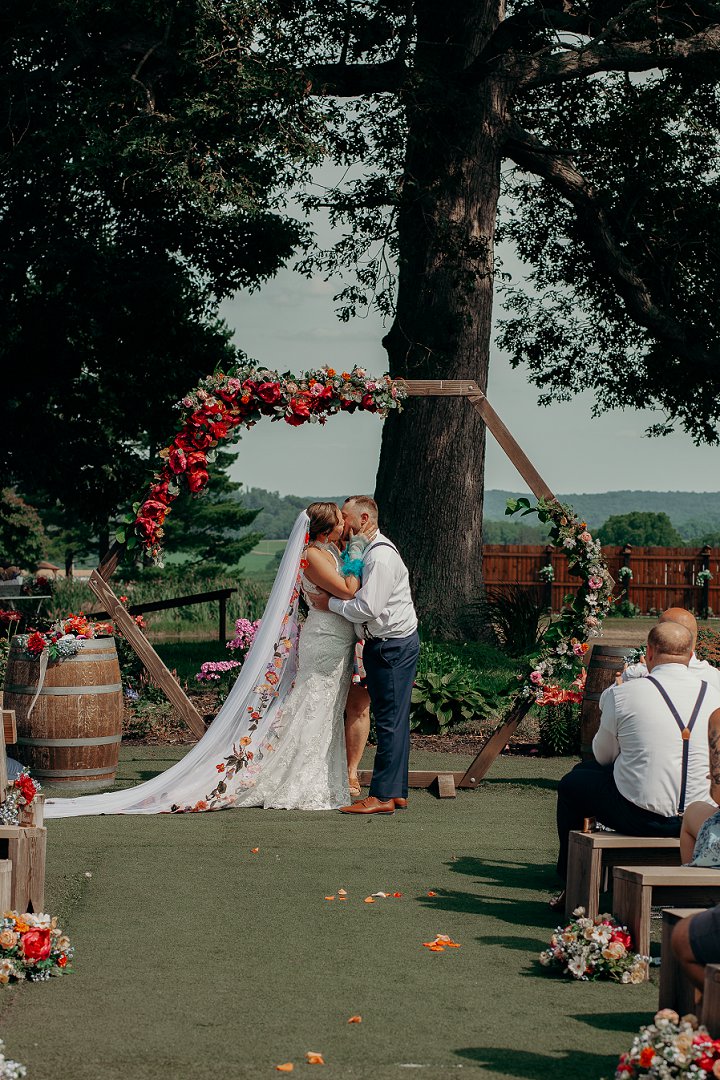 Happy Friday everyone! I hope you are ready for the weekend, maybe you have something festive planned? Nik, Dexter and I are off on a Christmas light trail on Saturday evening, Sunday we are putting the decorations up, what about you? I have a glorious wedding for you today, Maison and Chad were married on 21st June 2025 at The Hitching Post Ranch Lancaster, Ohio and it’s a wedding filled to the brim with amazing homemade details and bursting with colour. Kendra the photographer says about the wedding, ‘Oh my goodness the artistic efforts that created the look for this wedding are unbeatable. Maison and Chad were married on a perfect June day at a horse ranch that overlooked a beautiful farming town in Ohio. Juxtapositioned to the rural background were the incredible details – hand designed by Maison for months leading up to wedding day. Every table setting, boutonniere, broach and bouquet were expertly created by the fashion design major. A setting that matched Chad’s energy and details that told Maison’s story. A wedding day love story that encompassed them both perfectly.’ Big thanks to OnFaith Photography for the wonderful photos.