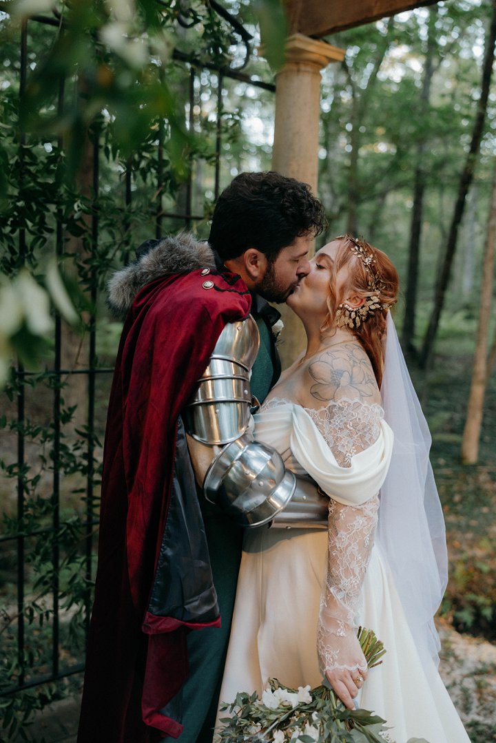 When Sarah and Matthew were married on October 4, 2025, their wedding reflected a whimsical blend of magic, medieval romance and woodland elegance. Held in a southeastern town in Arkansas, the enchanted celebration unfolded at the gorgeous Garrison Gardens. Towering trees and forest surroundings set the stage for an immersive “Enchanted Forest” experience. Designed to transport guests into a storybook world, the day combined old-world charm with playful fantasy, inviting everyone in attendance to step back in time. The day was captured by Breanna Kristine Photography.