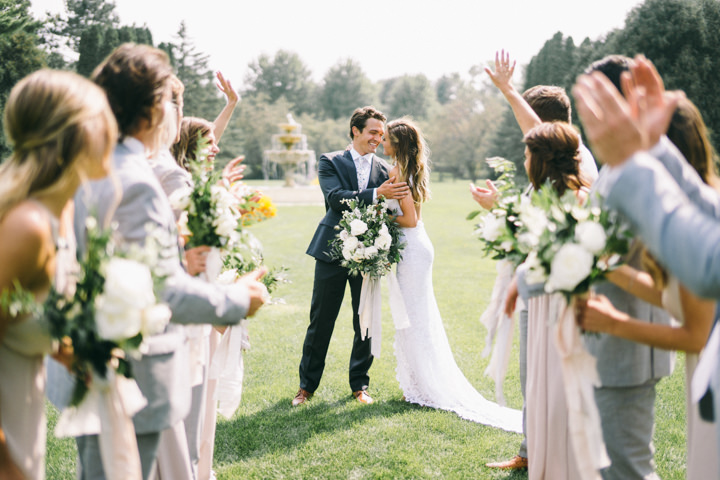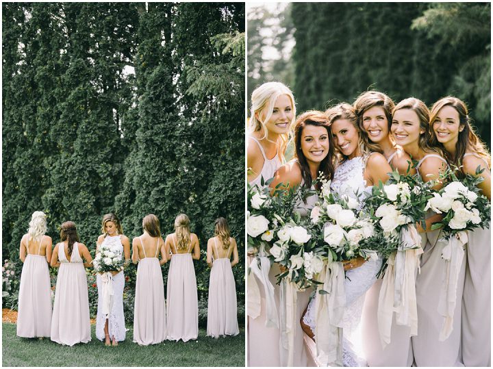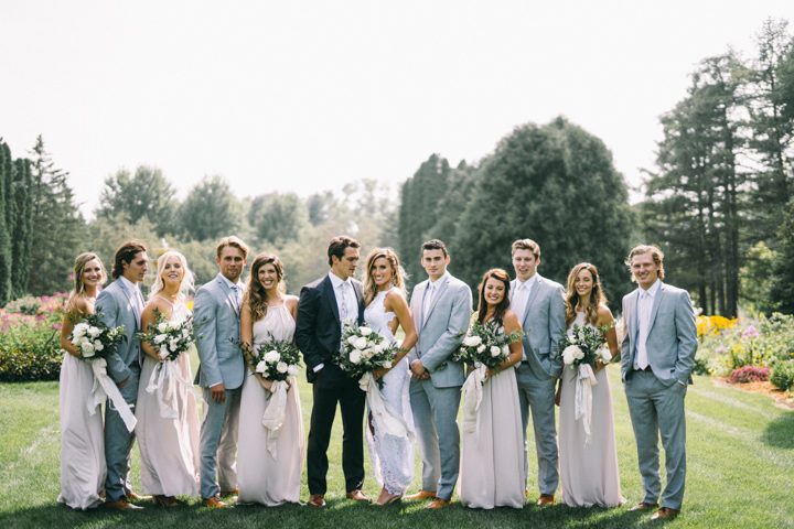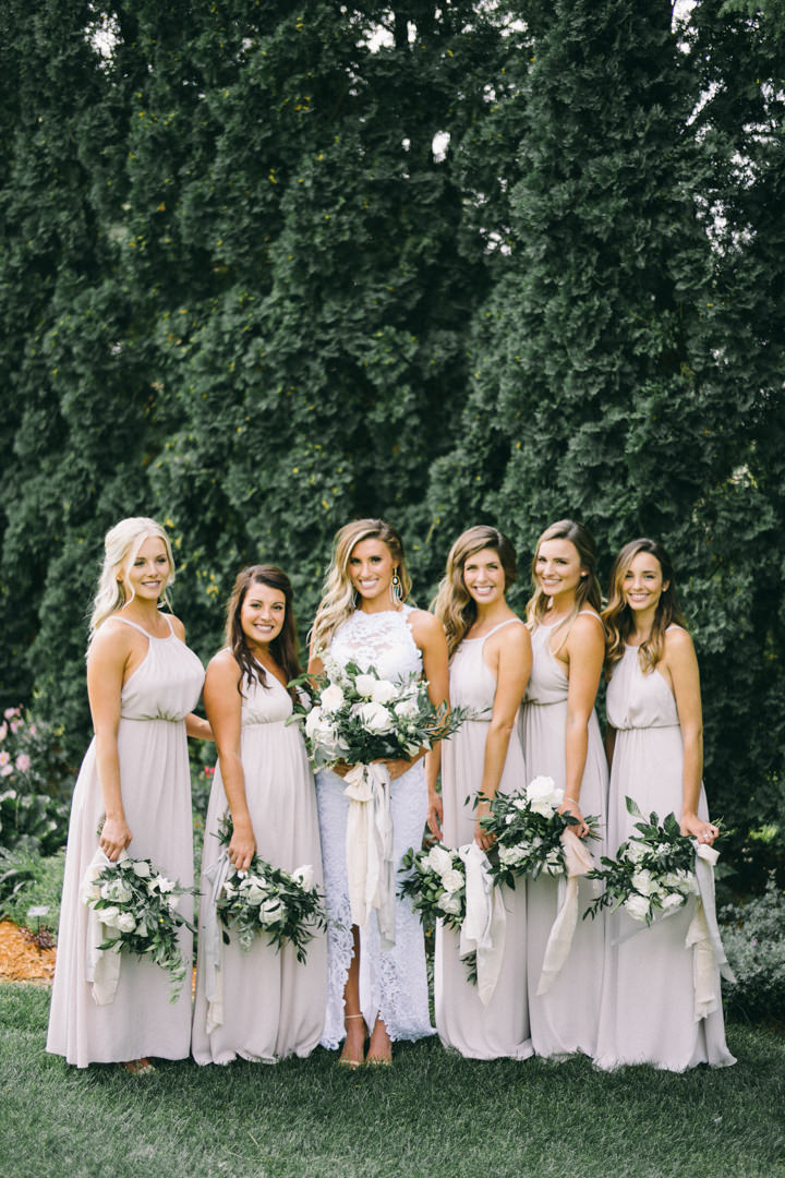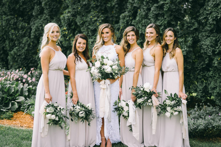 I didn’t have much color, I love everything neutral. I had a lot of greenery, greys, whites, and some gold. The bridesmaids dresses were champagne coloured and the groomsmen wore light grey.