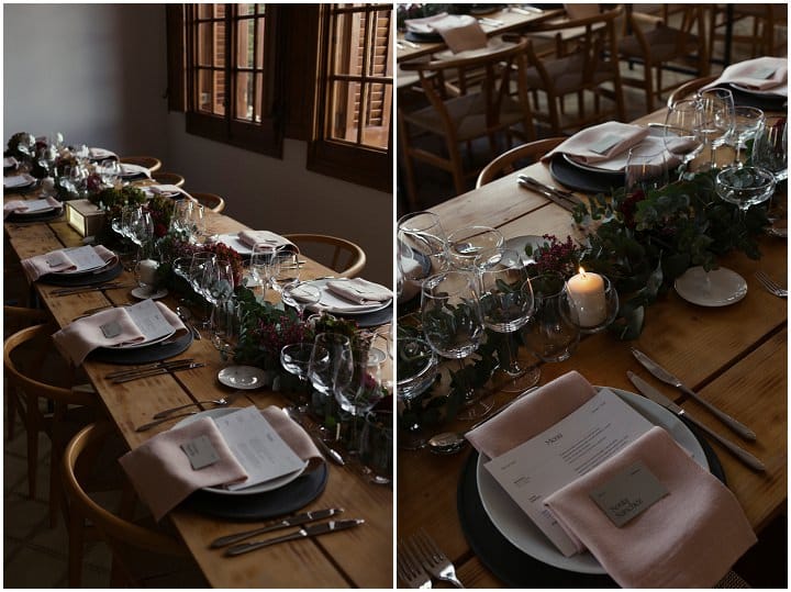 María and Andy were married on 11th November 2017 at Ca l’Iborra, Mataró in Barcelona. ‘We looked at other options first but we were very happy to find this place. The house is very nice, built in the 1920’s and restored with subtlety and care, preserving most of the originalarchitectural features. It’s surrounded by a gorgeous mediterranean forest where we wanted to celebrate the ceremony. Also, the people who own it are really nice. We had about 150 guests and it took two surprisingly short months. to plan.’