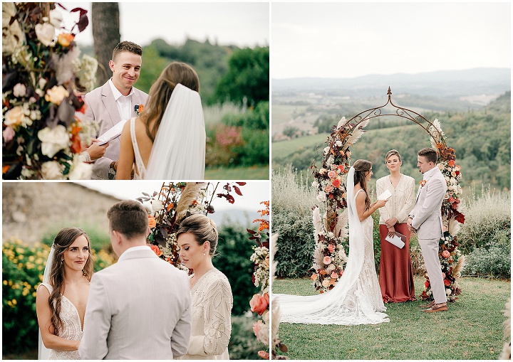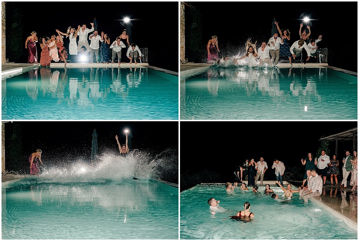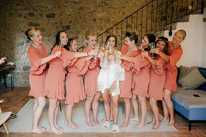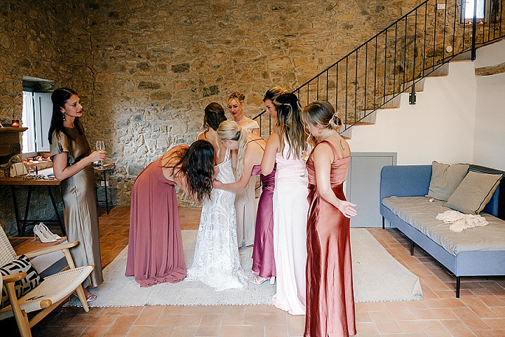 Today’s wedding comes from the romantic hills of Tuscany, and is a sure fire way to get you in the mood for any summer holidays you may have booked. Breanna and Jesse were married on 24th September in a stunning villa. Coming all the way form Colorado they wanted to immerse themselves in all things Italian and that they did with this gorgeous wedding. They chose a warm earthy colour pallet with creams, peaches and terracotta, which you can see in the flowers, the table decorations and the bridesmaids outfits. I just love the decoration, the gorgeous details, the macramé, the textures and the soothing colours. After their romantic ceremony and dinner, they turned it up a notch and the party really got started as they all jumped in the pool and partied the night away. Big thanks to Photographer Claudio Fasci for capturing the day for us.