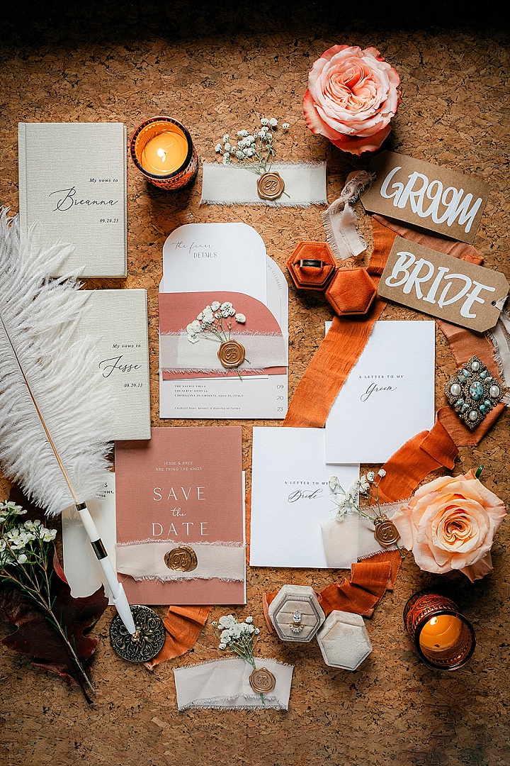 The ceremony took place under an arch of wildflowers, just as the sun began to set. Breanna wore a boho-style dress with lace details that perfectly matched the rustic atmosphere of the venue. Jesse, on the other hand, looked elegant and relaxed in a tailored suit with a terracotta-coloured tie that echoed the tones of the landscape. Their handwritten vows were a mix of emotions, tears, and laughter.