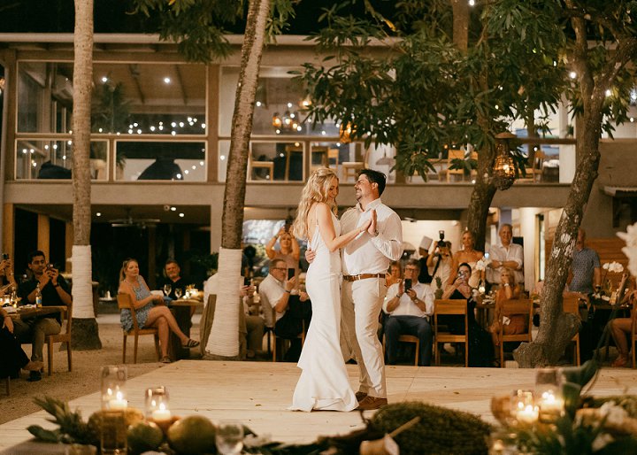 Live music set the perfect tone as Trisha walked arm in arm with her father towards Dan. Guests were informed ahead of time to don tropical formal attire, resulting in a stunning array of bright colors, linen suits, and elegant dresses.