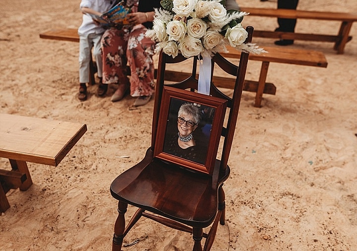 If a front-row seat feels too prominent, you can adapt this idea by placing a chair off to the side or using it during a private moment before guests arrive. It’s about acknowledging absence with intention rather than creating a moment that feels uncomfortable or overly formal.