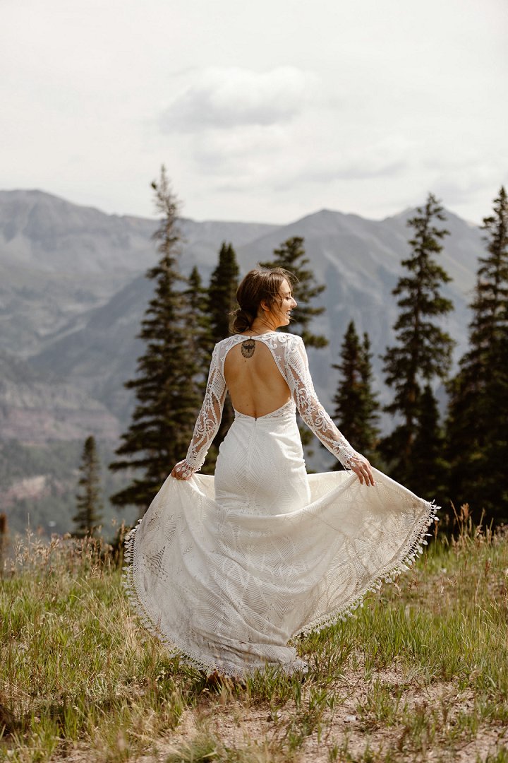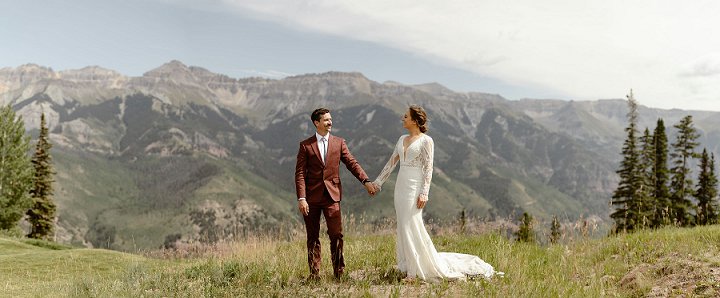 Happy Friday everyone! I hope you have had a good week and are getting through January OK, it’s been a long old month so far and we are only half way through it! However I don’t like to wish the days away, so I am embracing it and making the most of every day as much as I can. I am looking forward to a fairly chilled weekend, it will involve, walks, cake, fondue, my friend Sarah coming to visit and watching the Basketball, what about you? To round off the week, I have this gorgeous destination wedding. Kira and Rob were married on 10th September at Telluride Ski Resort San Sophia Overlook in Colorado. The whole day is all about the great outdoors, this couple love nature and being out in the mountains with their dogs, so they wanted this to be a key factor of their big day. They chose simple decor, a laidback vibe and the most amazing backdrop for their ceremony, Big thanks to Kelly at In Love and Adventure – Elopement Photography for the magnificent photos.